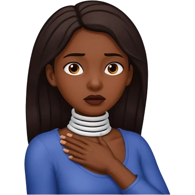 Girl with black hair choking neck with hands emoji
