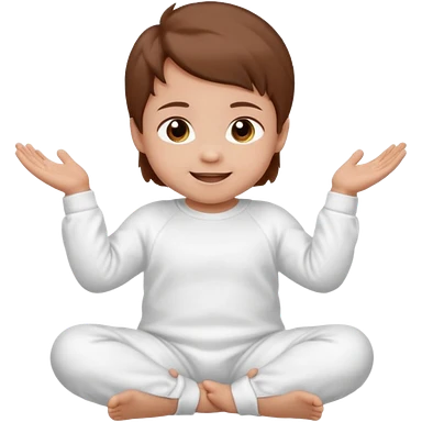 A smiling baby with brown hair, sitting down, moving its arms and hands. emoji