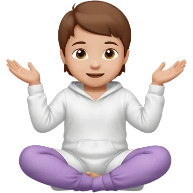 A smiling baby boy with brown hair, sitting down, moving its arms and hands. emoji