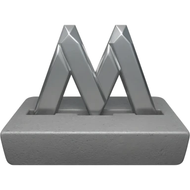 ...Minimalist 3D emoji based on: massive polished chrome geometric 'M' raised metal relief, integrated central on deeply impressed bare heel in rough grey concrete. Harsh shadows, high contrast. Isolated on white --no background emoji