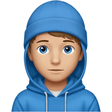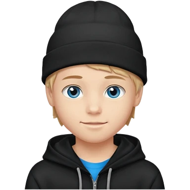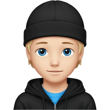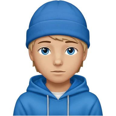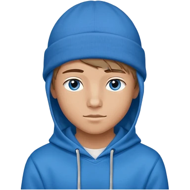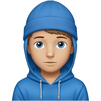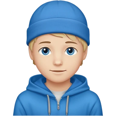 handsome and young teen pinterest boy good at fashion. popular among 'that brat girl', wearing hoodie (no blue) and beanie with blue eye and little smile emoji