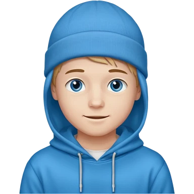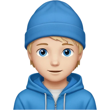 handsome and young teen pinterest boy good at fashion. popular among 'that brat girl', wearing hoodieand beanie with blue eye and little smile emoji