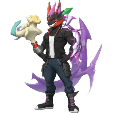 Handsome edgy spiky dark skeletal badass Venom-Xenomorph-Darkrai-Scizor-fusion, full body emoji