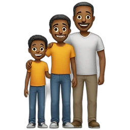 Handsome Father 40s green eyes with short full beard with Son 13s light brown eyes tousled bedhead look both has brunette hair light skin close together portrait emoji | AI Emoji Generator