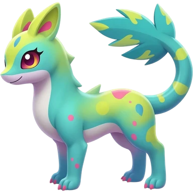 beautiful handsome gorgeous aesthetic colorful vibrant Vernid-Trico-species-Fakemon-creature by LiLaiRa, 4 legs, 1 tail, random markings, (full body) emoji