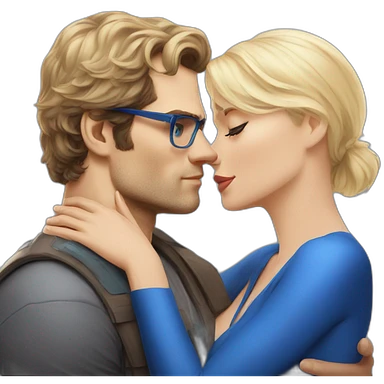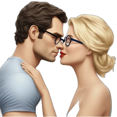 Henry Cavill kissing blond woman wuth glasses, with blue eyes with very very short hair emoji