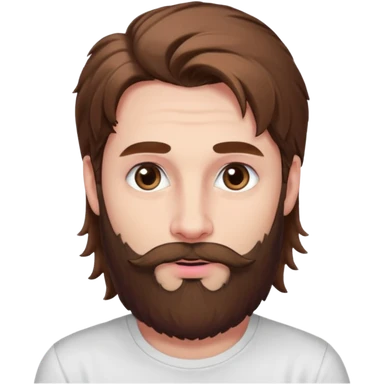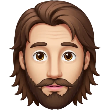 Handsome white man with big brown eyes thin pink lips long nose and long brown messy hair low beard emoji