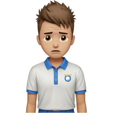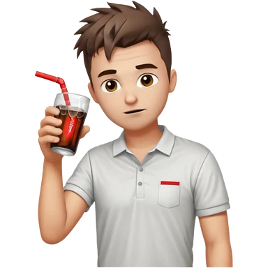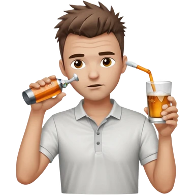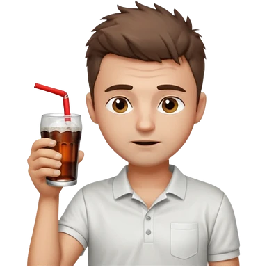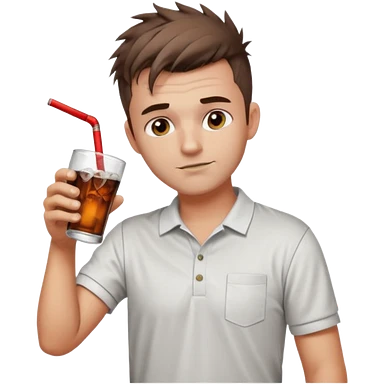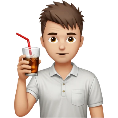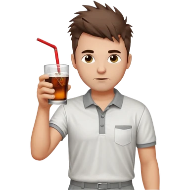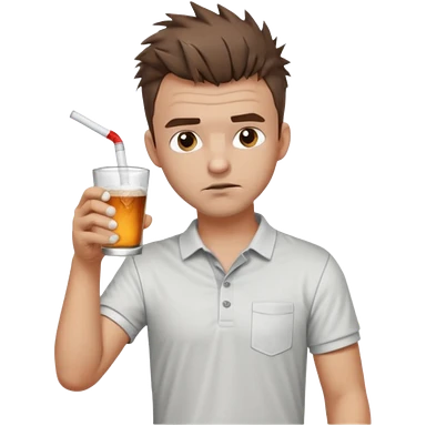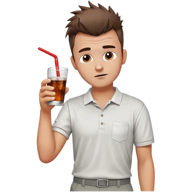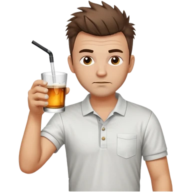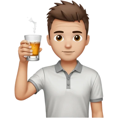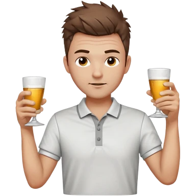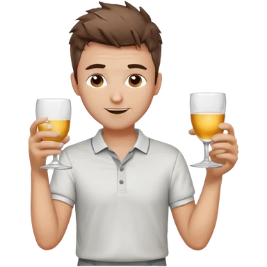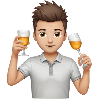 Handsome male.short messy brown hair.mowhawk hairstyle. wearing white golf shirt.grey shorts. Cheersing with a small glass. Wedding ring emoji | AI Emoji Generator