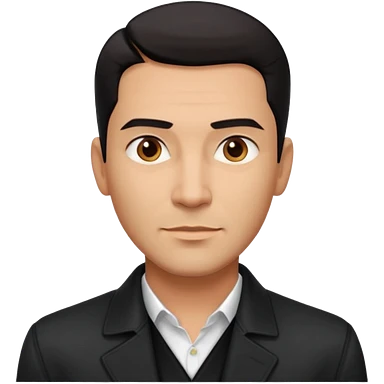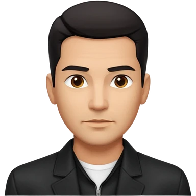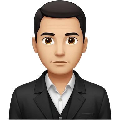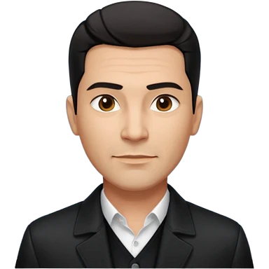 Attractive Hispanic TV host in his mid to late 40s with light brown skin, short straight black hair with pronounced fade haircut, stubble/scruff facial hair instead of full beard, square handsome face with strong jawline, friendly expression, wearing open black jacket with white buttoned shirt emoji