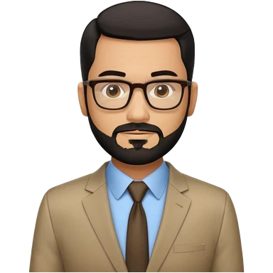 Attractive Hispanic TV host in his mid to late 40s with light brown skin, short straight black hair slicked back with fade on sides, square handsome face with strong jawline, friendly approachable expression, black beard, wearing glasses emoji