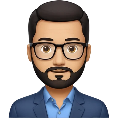 A man with a long black mid hair, some medium glasses, a goatee, hes very handsome emoji