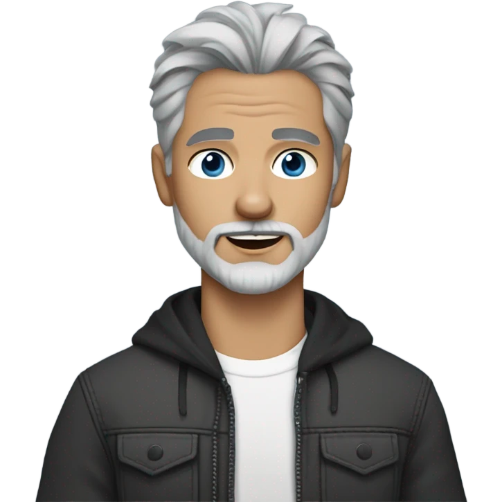 A handsome 25 year old man with fairly short brown hair, blue eyes, a very light goatee beard emoji