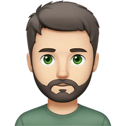 Handsome man with dark hair, with a keyboard computer on the image, gradient short hair on the side, green eyes. Thin face. Black t-shirt. A little beard. emoji | AI Emoji Generator