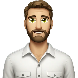 handsome optimist oval head brunette man and beard green eyes wearing white button down shirt emoji