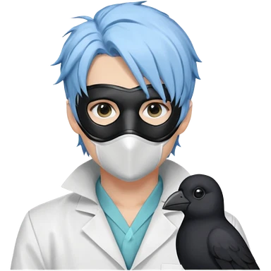 Handsome sexy adult anime man with light-blue hair and a black bird mask, wearing a white lab coat (Il Dottore from Genshin Impact)emoji