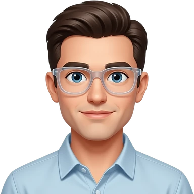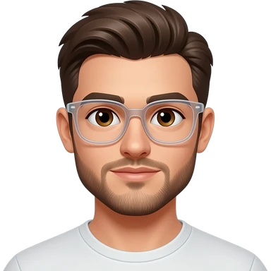 handsome tall guy with transparent specs, eyes brown, and little beard and good thick styled hair emoji