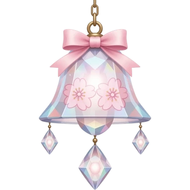 Hanging Iridescent pastel pink sakura crystals white-pearly suncatcher with bell LAMP emoji