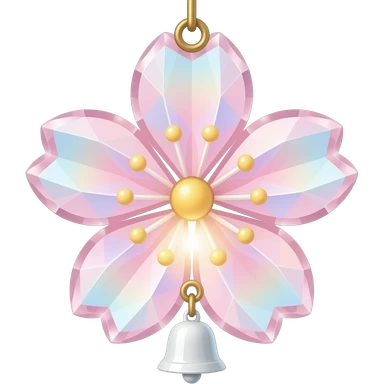 Hanging Iridescent pastel pink sakura crystals white-pearly suncatcher with bells emoji