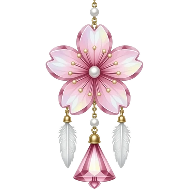 Hanging Iridescent pastel pink sakura crystals white-pearly suncatcher dreamcatcher with bells and feathers emoji | AI Emoji Generator