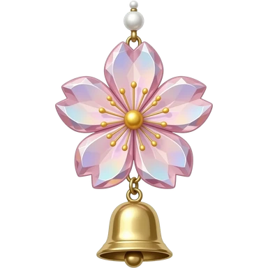 Hanging Iridescent pastel pink sakura crystals white-pearly suncatcher with bell emoji