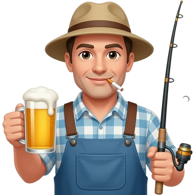 A fisherman with a ciggarette hanging out of his mouth, a beer in one hand, and a fishing rod in the other hand emoji