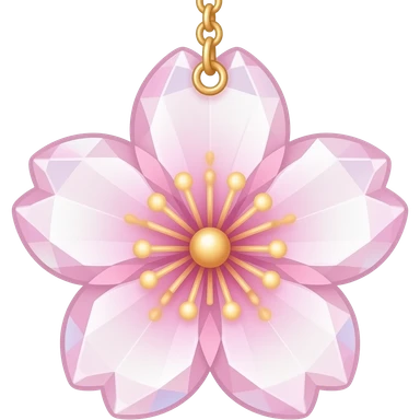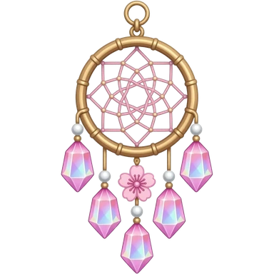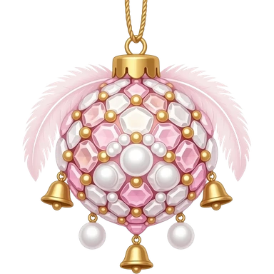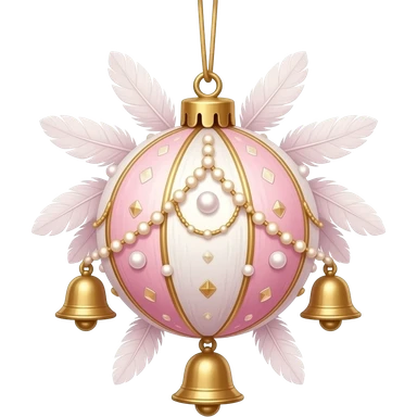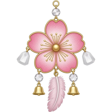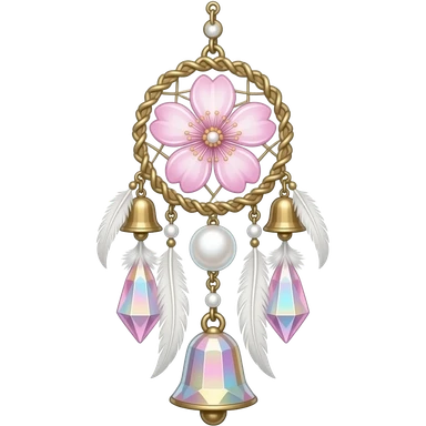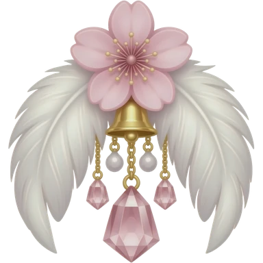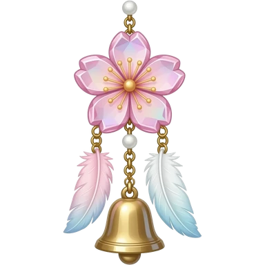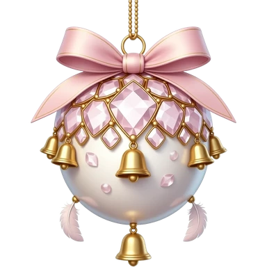 Hanging pastel Sakura-pink white-wooden gold crystals white-pearly ornament with a tiny cute gold bell and many tiny chained beads bow tie feathers emoji | AI Emoji Generator