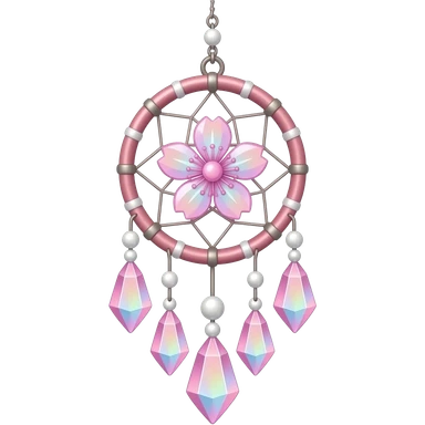 Hanging Iridescent pastel pink sakura crystals white-pearly suncatcher dreamcatcher emoji
