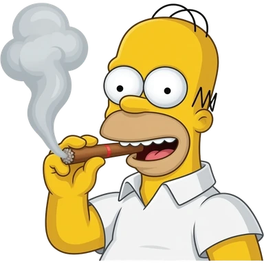 Hommer Simpson ki fumme un enorme joint plien de fumme dans le decord et il rigole emoji