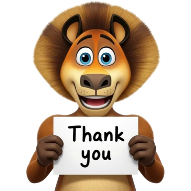 happy excited mort from madagascar with a thank you sign and confetti around emoji