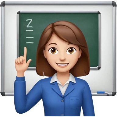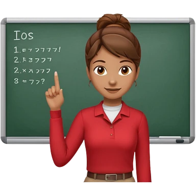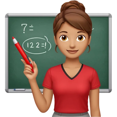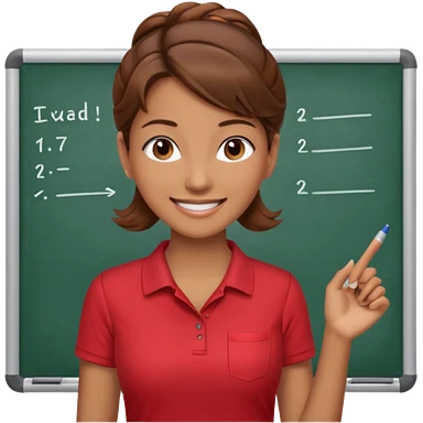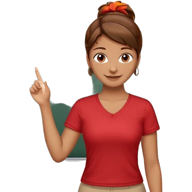 Happy instructor female brown hair whit board hair up red shirt emoji