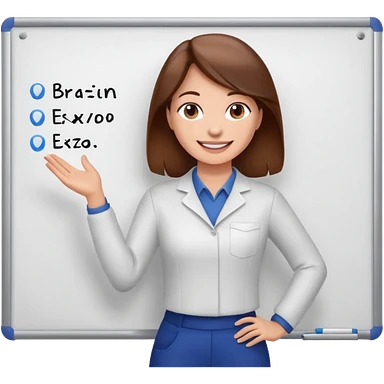 Happy instructor female brown hair whit board emoji