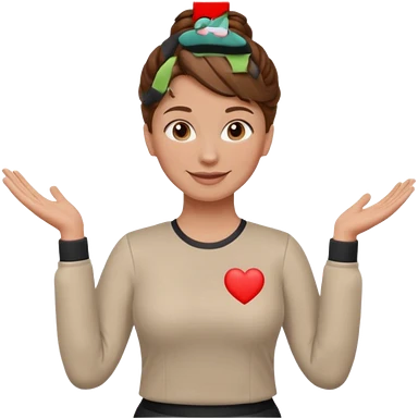 happy teacher standing up brown hair updo, CPR long sleeve top emoji