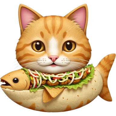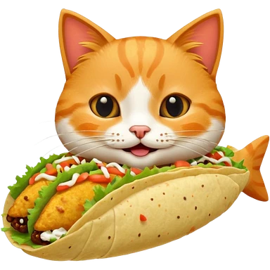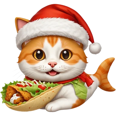 Happy Cat eating a fish taco wearing a Santa hat emoji