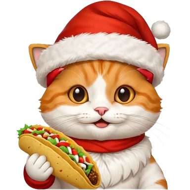 Happy Cat wearing a Santa hat and holding a taco emoji