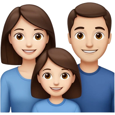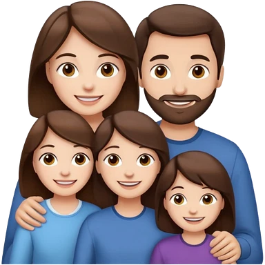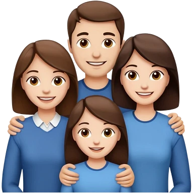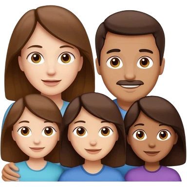 happy pale white four person family with one brown hair dad, one brown hair mom, one dark brown girl, and one brown hair girl emoji
