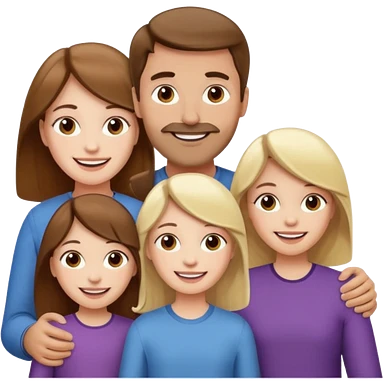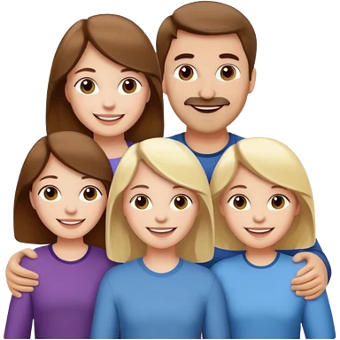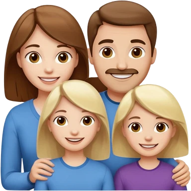 happy pale white four person family with one brown hair dad, one brown hair mom, one blonde girl, and one brown hair girl emoji