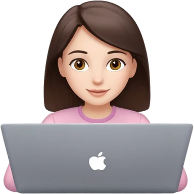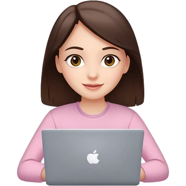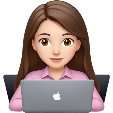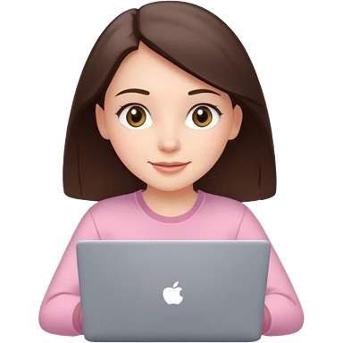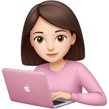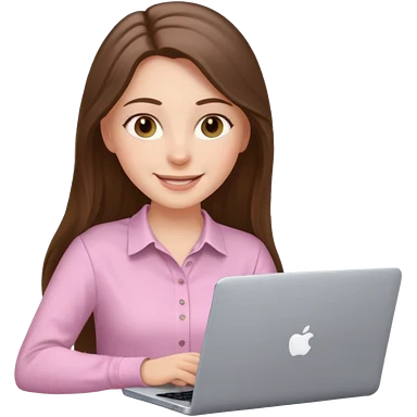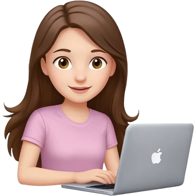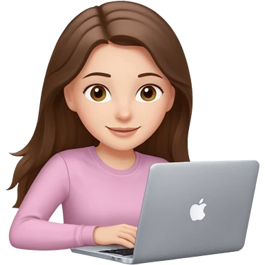 happy white long brunette hair girl with hazel eyes and in light pink using laptop emoji