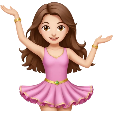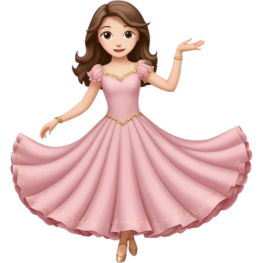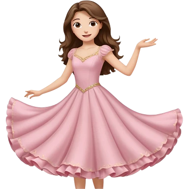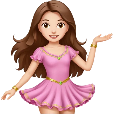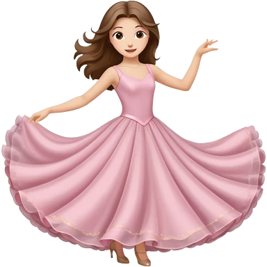 happy white long brunette hair girl with hazel eyes in light pink ballroom dancing emoji