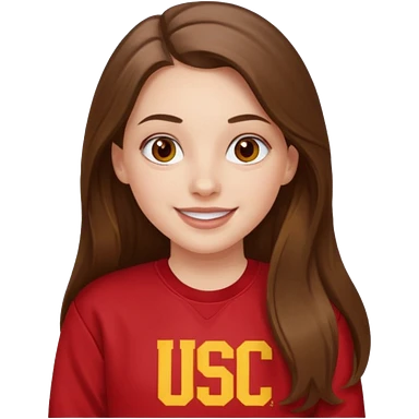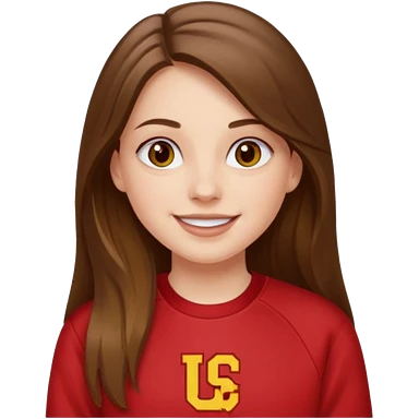 happy white long brunette hair girl with hazel eyes and in red USC sweatshirt emoji