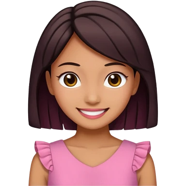 happy long haired brunette girl hazel eyes in light pink holding a margarita emoji