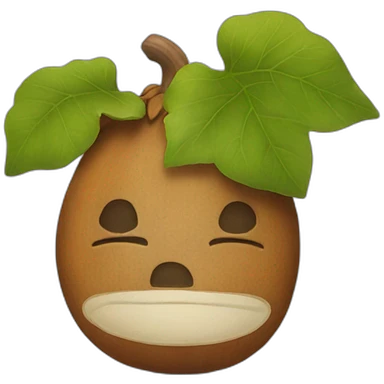 Cinematic tiny happy acorn, glossy brown, soft glowing highlights, tiny adorable face with big sparkly eyes, sitting on a pastel leaf, warm and cheerful. emoji