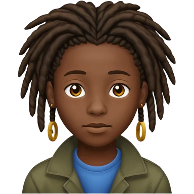 an african american girl with mid back length dread locs black glasses scar on the right side of face its like a red brown line im gold grills zombie mouth locs upfront emoji
