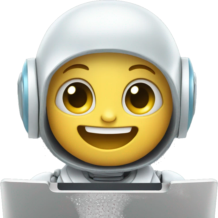 Happy baby robot coding on computer emoji | AI Emoji Generator