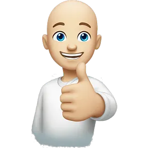 happy bald boy blue-eyed giving thumbs-up no white shirt, just the face and hand emoji