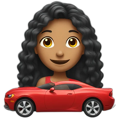 happy car with happy girl who is black long hair emoji | AI Emoji Generator