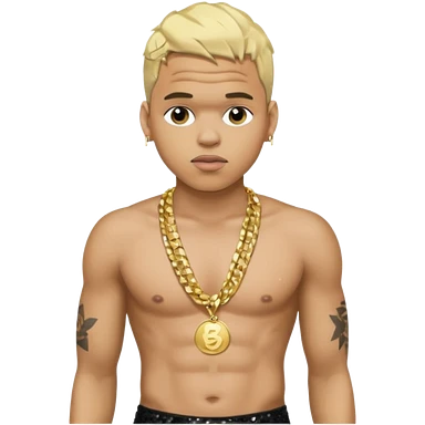 Chris Brown with metallic black pants, shirtless with necklace emoji