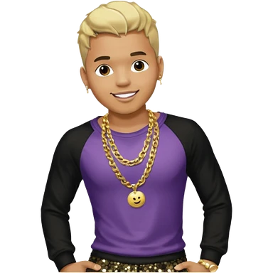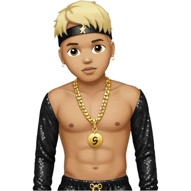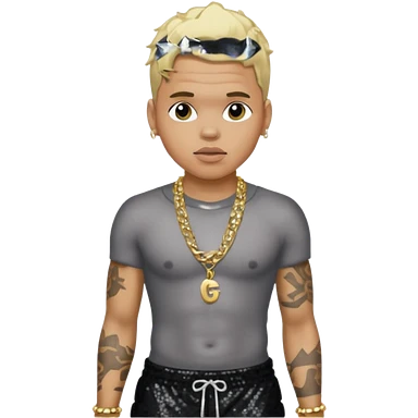 Chris Brown with blonde hair, black sequin baggy pants, shirtless with necklace emoji