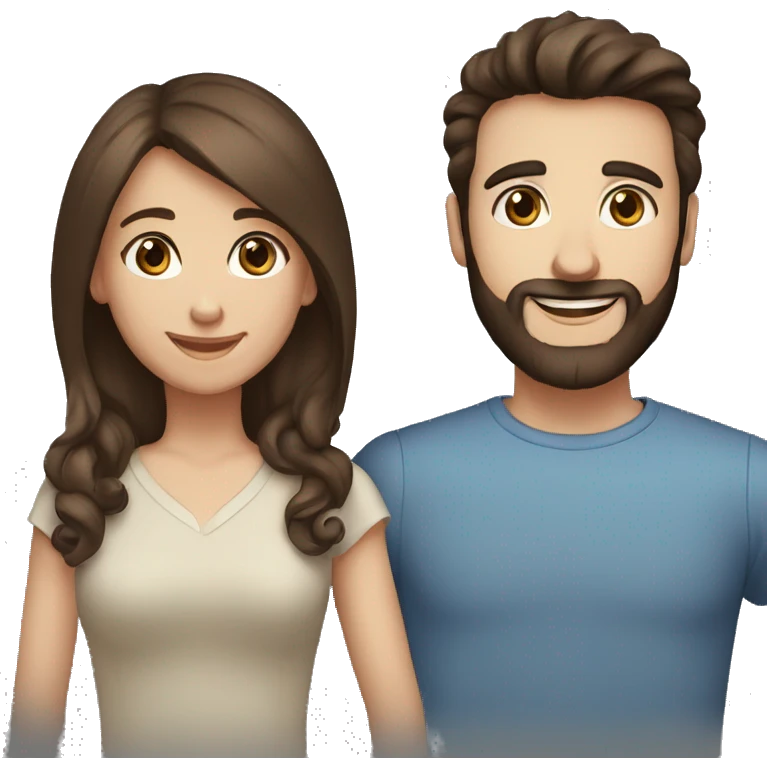 Happy couple : girl brown hair and brown eyes, boy dark brown hair and blue eyes with beard emoji | AI Emoji Generator
