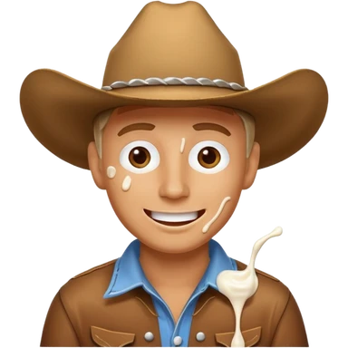 Happy Cowboy with white yogurt all over face and dripping emoji