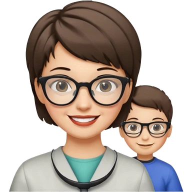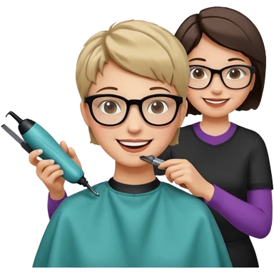 Happy woman with very short hair and glasses having haircut emoji emoji